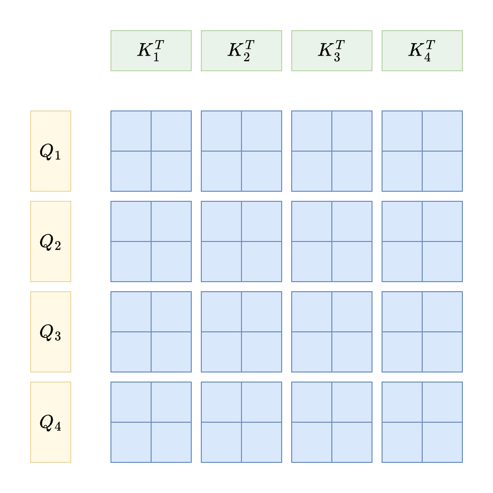 To solve this, we can split the attention matrix into smaller blocks and run calculations on those blocks individually: